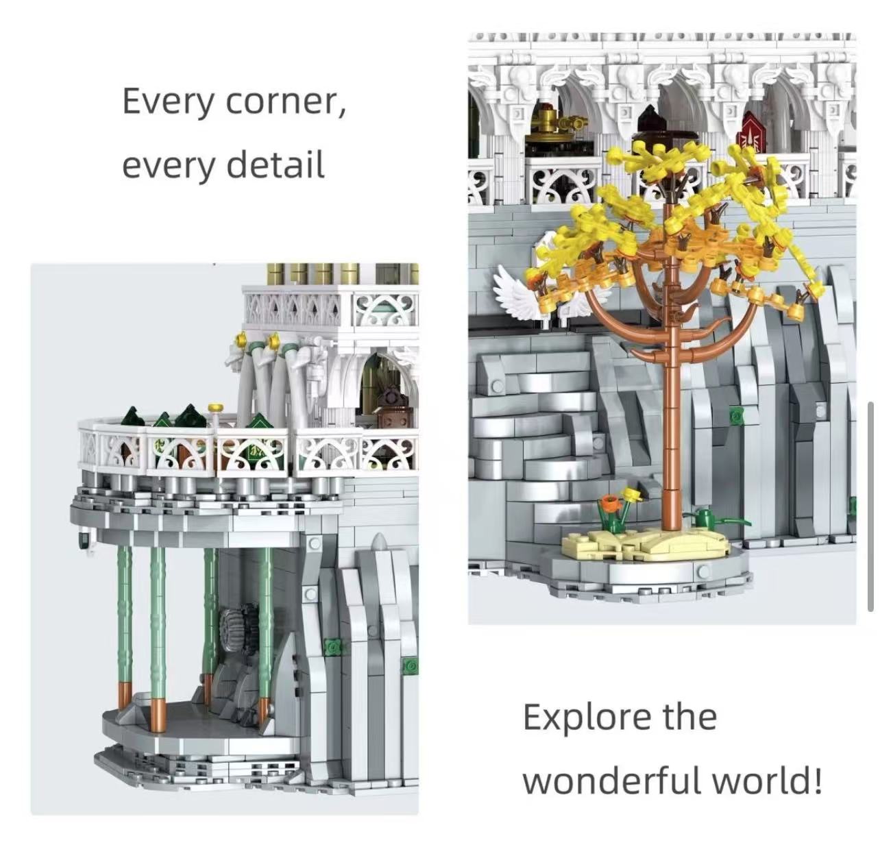 ✅“Rivendell Hengqin Brotherhood” refers to one of the nine modular sections in the Rivendell Street Scene Series, a large-scale brick-building set inspired by Tolkien’s Rivendell. This particular module—Hengqin Brotherhood—represents an elegant Elven structure designed to seamlessly connect with its eight sister sections to recreate a sprawling Middle-earth Elven city